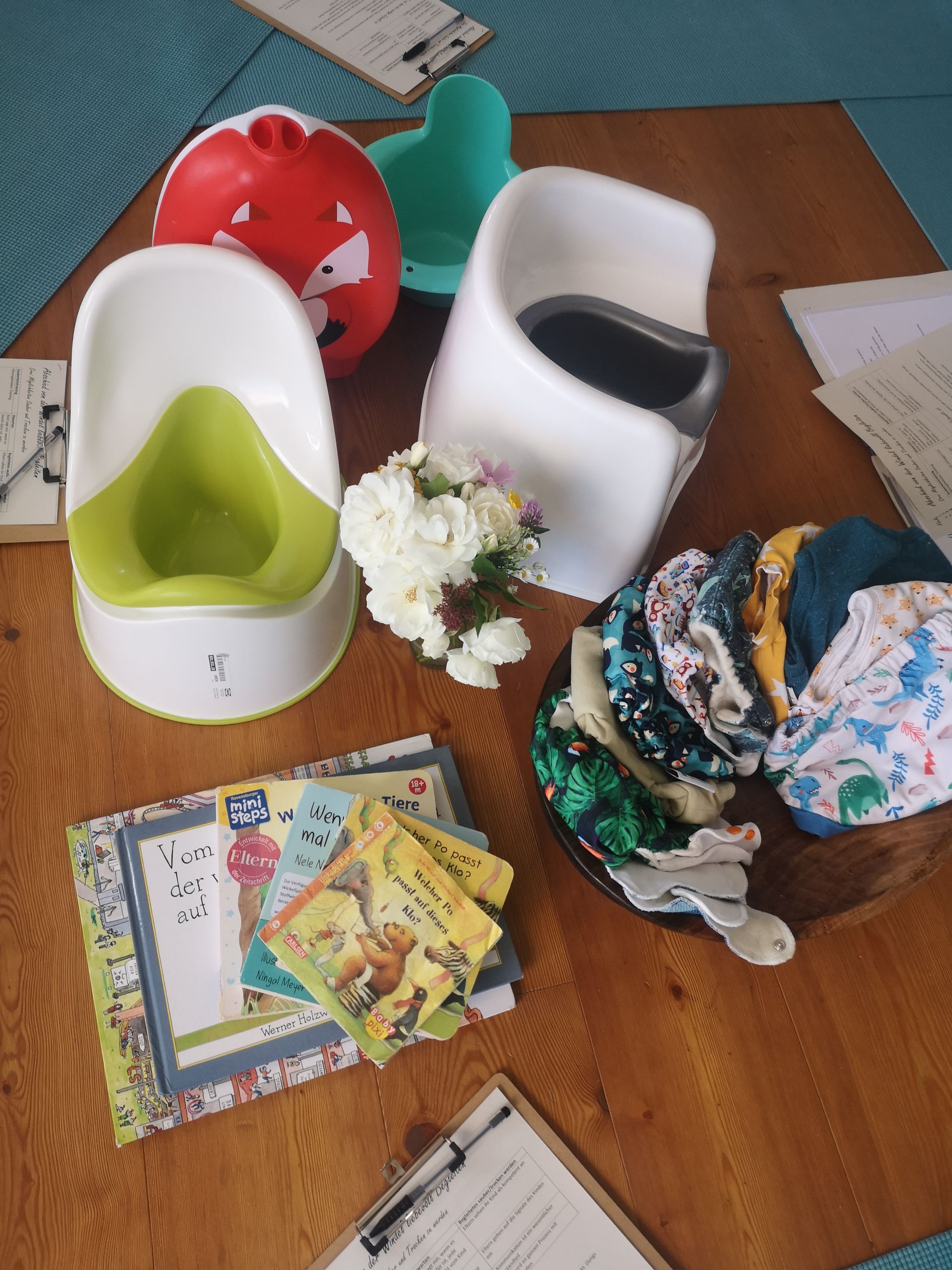 - Töpfchen oder Toilette ( im Kurs habe ich eine Vielzahl an Töpfchen zum anschauen dabei)